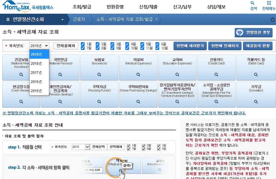 연말정산 간소화를 하기 위해 홈텍스에 들어가봤습니다.